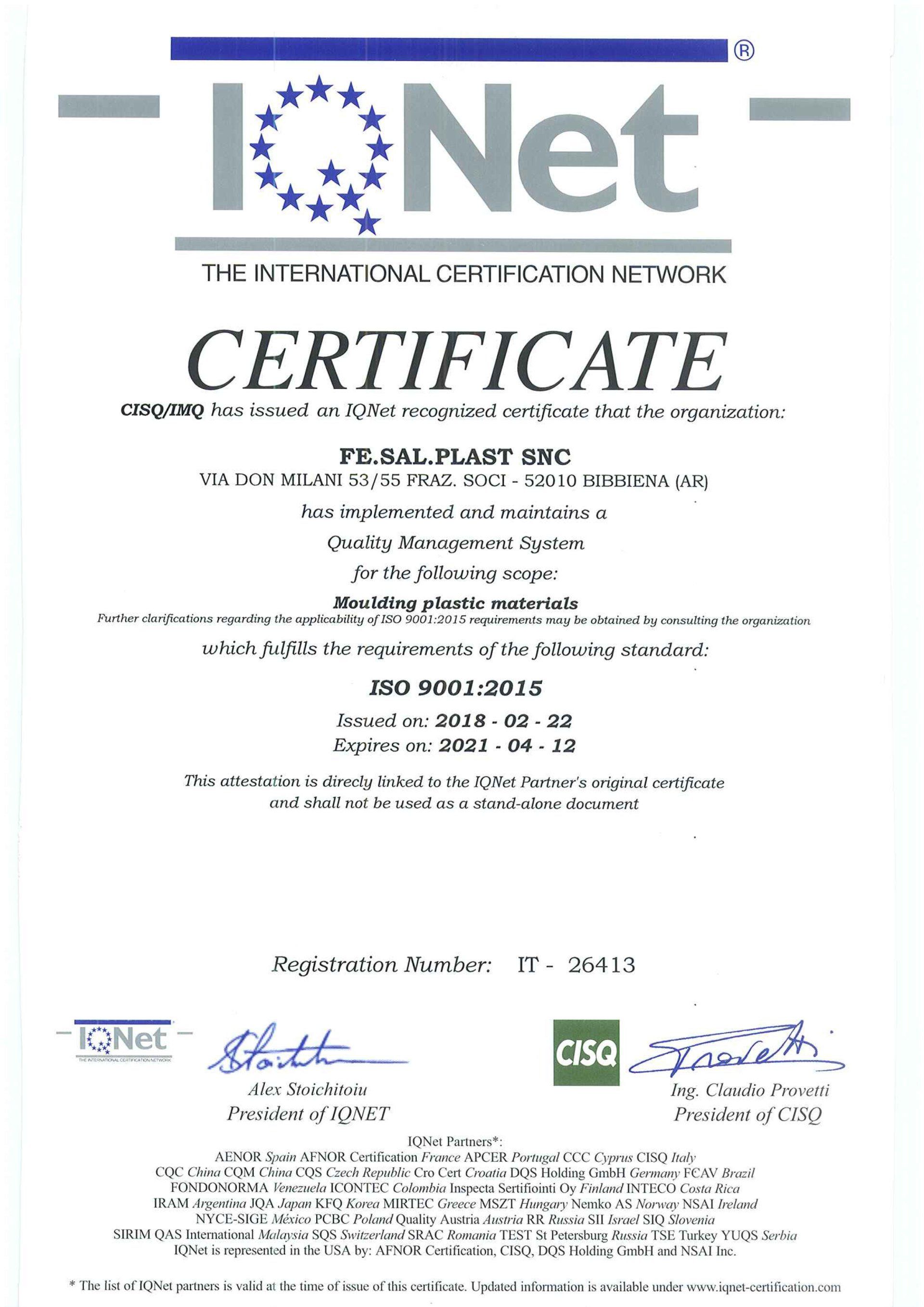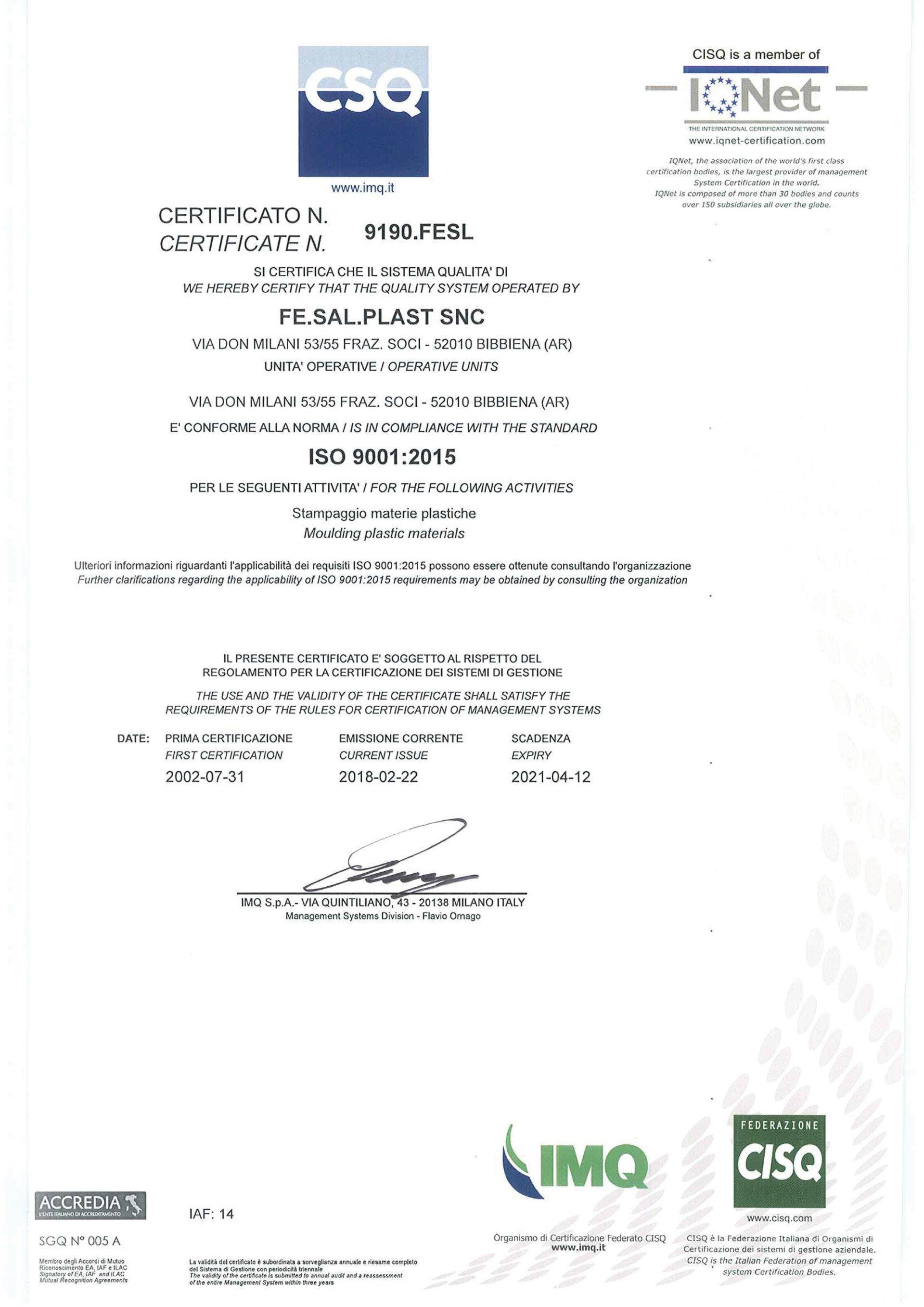 Il marchio Fe.Sal Plast sas ha oggi un mercato internazionale: la qualità dei prodotti realizzati ha fatto dell'azienda di Bibbiena un sinonimo di eccellenza anche in tanti paesi europei, nord-africani e mediorientali. L'attività di stampaggio delle materie plastiche avviene tramite tecnologie e macchinari innovativi e, inoltre, prima della commercializzazione, ogni manufatto viene testato e sottoposto a controlli di qualità molto severi.